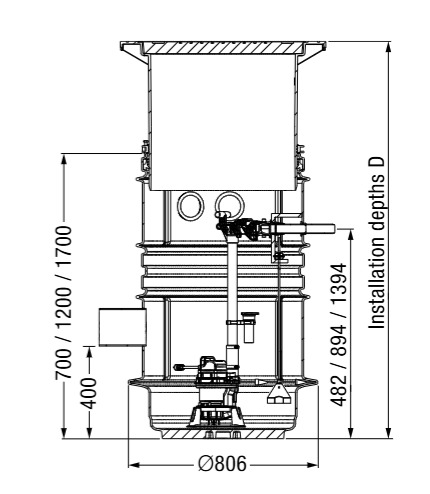 Distance from centre of outlet pipe to tank bottom: 894 mm