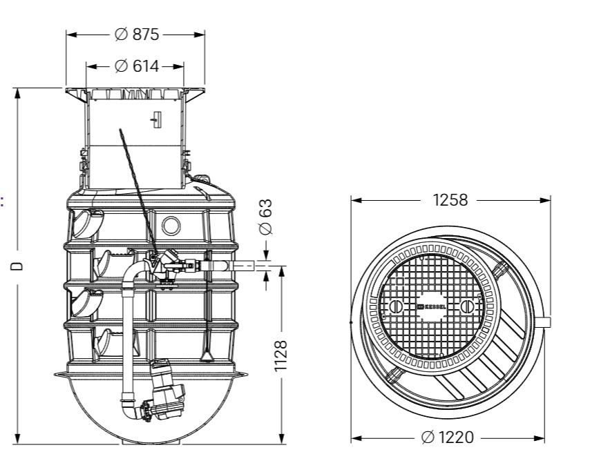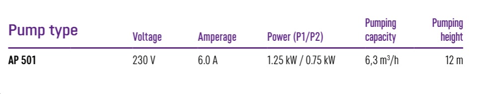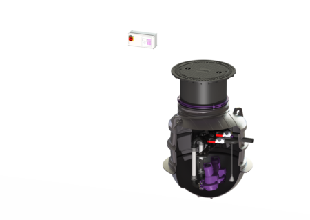 The pump with multi-vane impeller ensures maximum operating reliability. Quick-release closures enable the integrated components to be removed easily. The components are pre-assembled for final assembly on site. Including openings for inlet, ventilation and cable duct.