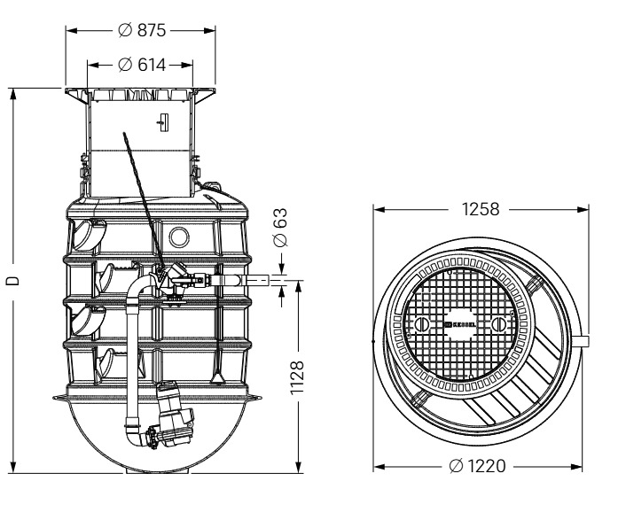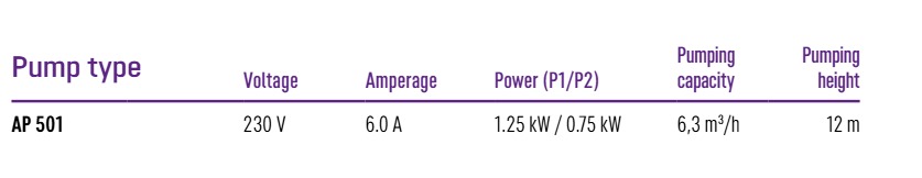 The pump with multi-vane impeller ensures maximum operating reliability. Quick-release closures enable the integrated components to be removed easily. The components are pre-assembled for final assembly on site. Including openings for inlet, ventilation and cable duct.