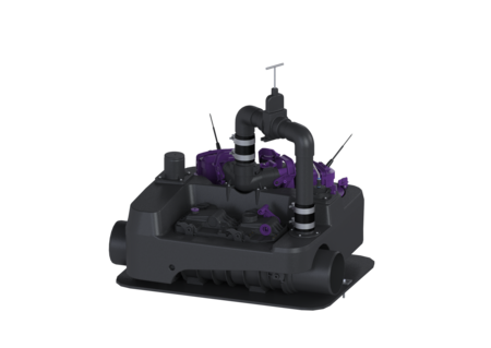 During the backwater phase the wastewater drains via connectable pressure pipe. Including a backflow preventer and shut-off valve for the pressure pipe. Including penetration seals DN 70 for the on-site ventilation pipe Polymer closure system for the drainage pipe for safe closure of the drainage pipe in the event of backwater. Consisting of two hinged flaps including an emergency closure (for manual locking if required).