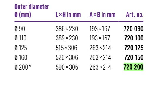 - Nominal çap notu: Hidrolik kapasite DN 150 ile eşdeğerdir