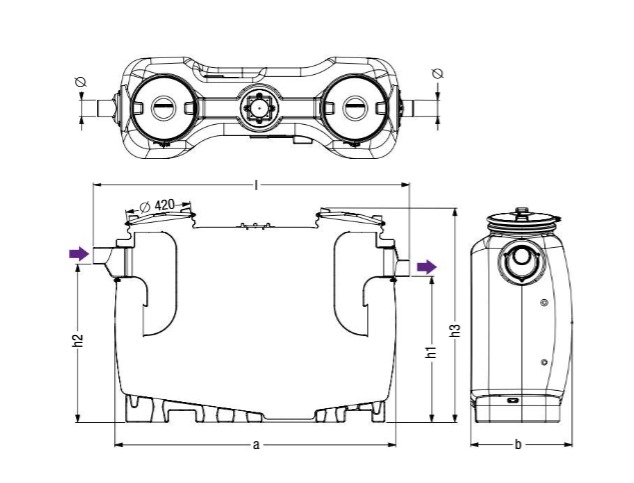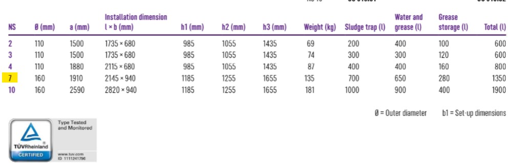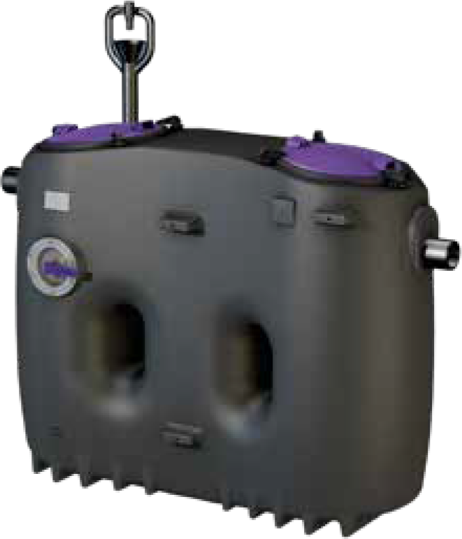 Atık su içeren yağ için ayırıcı sistemi, don korumalı alanlarda zemin üzeri kuruluma uygundur ve haznesinde hiç metal parça içermez. Dayanıklı polimerden (PE) yapılmış toplama haznesi, entegre bir tortu tutucu içerir. Hızlı kapama kilidi olan koku geçirmez iki kapak, temizlik ve bakım işleri için kolay erişim sağlar. Vakum sistemli vidanjör gereklidir. Hazne, manuel tahliye sırasında açılır.