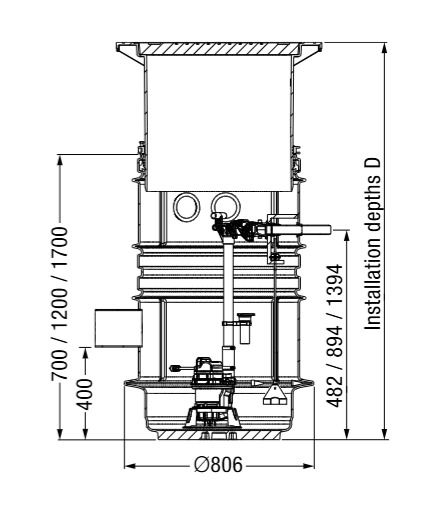 Distance from centre of outlet pipe to tank bottom: 894 mm