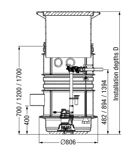 Groundwater resistant from lower edge of base section: 2500 mm
