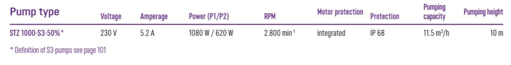 Max. pumping capacity: 11,5 m³/h
