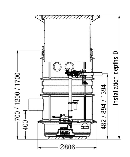 Distance from centre of outlet pipe to tank bottom: 894 mm