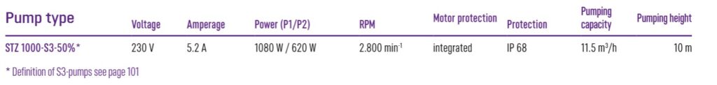 Distance from centre of inlet pipe to tank bottom: 475 mm