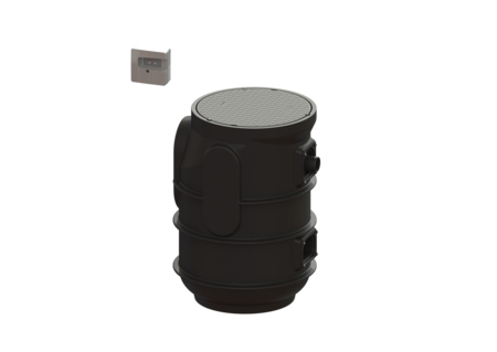 The pumping station without sewagel wastewater is suitable for underground installation and is equipped with a backflow preventer for the pressure pipe. The PE tank is resistant to domestic wastewater and includes a pedestrian class polymer cover plate.