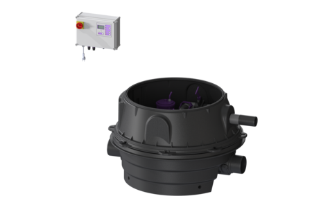 Quick-release closures enable the integrated components to be removed easily. Normally, draining takes place via the natural fall to the sewer. Backwater is detected by an optical probe, which causes the motor-driven closure system to close automatically and there is no longer free passage to the sewer. During the backwater phase, the water drains via a pressure pipe, which carries the wastewater into the sewer. The pressure pipe is a welded PE pipe; with pump SPF 4500, the pressure pipe must also be continued up to a pressure release chamber. The station is controlled by a user-friendly control unit, which is optionally integrated in the building management system via a potential-free contact, or alarm and collective fault messages can be output via a GSM interface. The KESSEL modular system provides different upper sections and engineering chamber options as accessories.