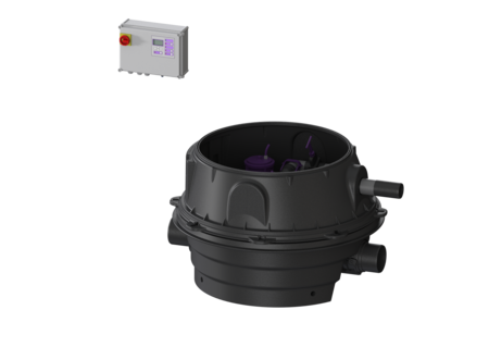 Quick-release closures enable the integrated components to be removed easily. Normally, draining takes place via the natural fall to the sewer. Backwater is detected by an optical probe, which causes the motor-driven closure system to close automatically and there is no longer free passage to the sewer. During the backwater phase, the water drains via a pressure pipe, which carries the wastewater into the sewer. The pressure pipe is a welded PE pipe; with pump SPF 4500, the pressure pipe must also be continued up to a pressure release chamber. The station is controlled by a user-friendly control unit, which is optionally integrated in the building management system via a potential-free contact, or alarm and collective fault messages can be output via a GSM interface. The KESSEL modular system provides different upper sections and engineering chamber options as accessories.