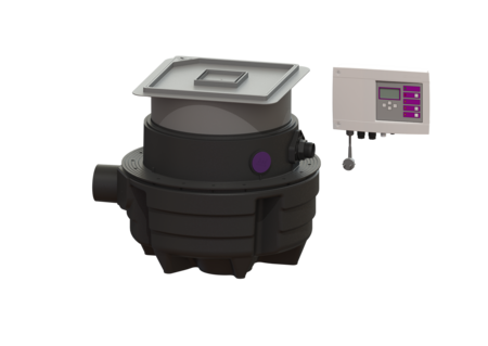The lifting station for faecal and faecal-free wastewater is equipped with one or two submersible pumps and a backflow preventer. The collection tank made of permanently resistant polymer (PE) has an enclosed pump tank. One-handed closures enable easy removal of the integrated components.
