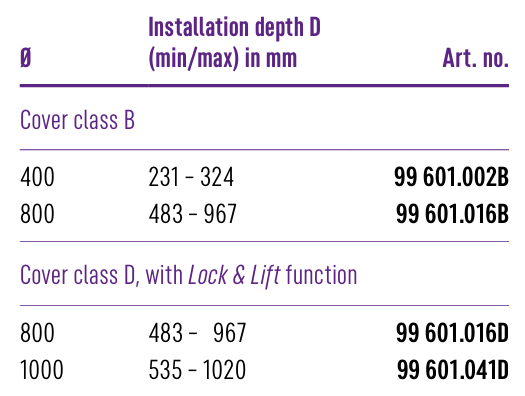 Class D (Ø 1000 / 800), with Lock & Lift function