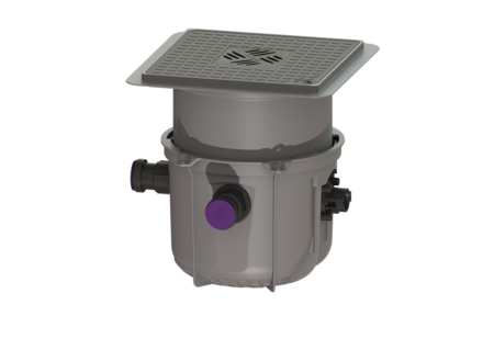 The ready to plug in small lifting station for faecal-free wastewater is suitable for wastewater drainage of individual sanitary appliances. The submersible pump with float switch can be removed easily with the help of one-handed closures. The collection tank made of polymer (PE) has an open pump tank and is resistant to aggressive wastewater. The system for installation in the floor slab is preassembled for final installation on site.