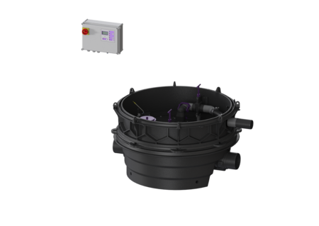 Quick-release closures enable the integrated components to be removed easily. Normally, draining takes place via the natural fall to the sewer. Backwater is detected by an optical probe, which causes the motor-driven closure system to close automatically and there is no longer free passage to the sewer. During the backwater phase, the water drains via a pressure pipe, which carries the wastewater into the sewer. The pressure pipe is a welded PE pipe; with pump SPF 4500, the pressure pipe must also be continued up to a pressure release chamber. The station is controlled by a user-friendly control unit, which is optionally integrated in the building management system via a potential-free contact, or alarm and collective fault messages can be output via a GSM interface. The KESSEL modular system provides different upper sections and engineering chamber options as accessories.