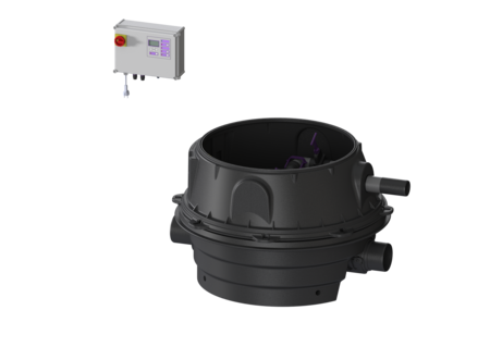 Quick-release closures enable the integrated components to be removed easily. Normally, draining takes place via the natural fall to the sewer. Backwater is detected by an optical probe, which causes the motor-driven closure system to close automatically and there is no longer free passage to the sewer. During the backwater phase, the water drains via a pressure pipe, which carries the wastewater into the sewer. The pressure pipe is a welded PE pipe; with pump SPF 4500, the pressure pipe must also be continued up to a pressure release chamber. The station is controlled by a user-friendly control unit, which is optionally integrated in the building management system via a potential-free contact, or alarm and collective fault messages can be output via a GSM interface. The KESSEL modular system provides different upper sections and engineering chamber options as accessories.
