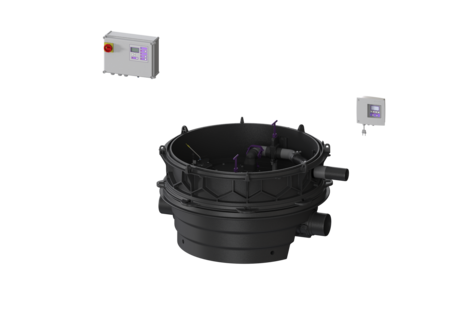 Quick-release closures enable the integrated components to be removed easily. The pipe cross-section is normally open and the water drains to the sewer via natural fall. Backwater is detected by an optical probe, which causes the closure systems to close automatically and there is no longer free passage to the sewer. During the backwater phase, the water drains via a pressure pipe, which carries the wastewater into the sewer. The pressure pipe is a welded PE pipe; with pump SPF 4500, the pressure pipe must also be continued up to a pressure release chamber. The station is controlled by a user-friendly control unit, which is optionally integrated in the building management system via a potential-free contact, or alarm and collective fault messages can be output via a GSM interface. A redundant control unit also provides additional safety. The KESSEL modular system provides different upper sections and engineering chamber options as accessories.