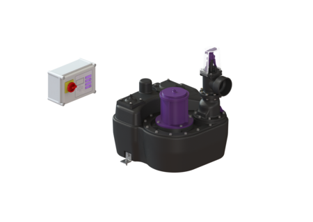 The lifting station for faecal and faecal-free wastewater is equipped with a submersible pump and a backflow preventer. The collection tank made of permanently resistant polymer (PE) offers universal connection options and has a screwed access cover.